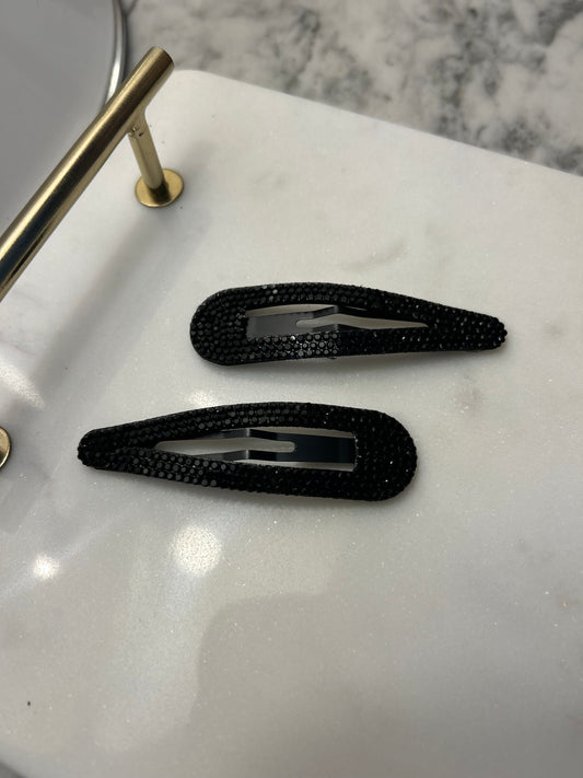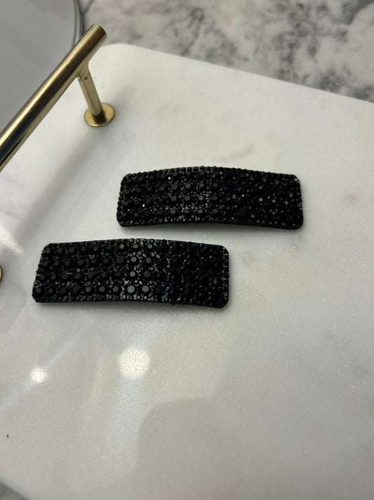 Lot de 2 barrettes à strass noirs pleines