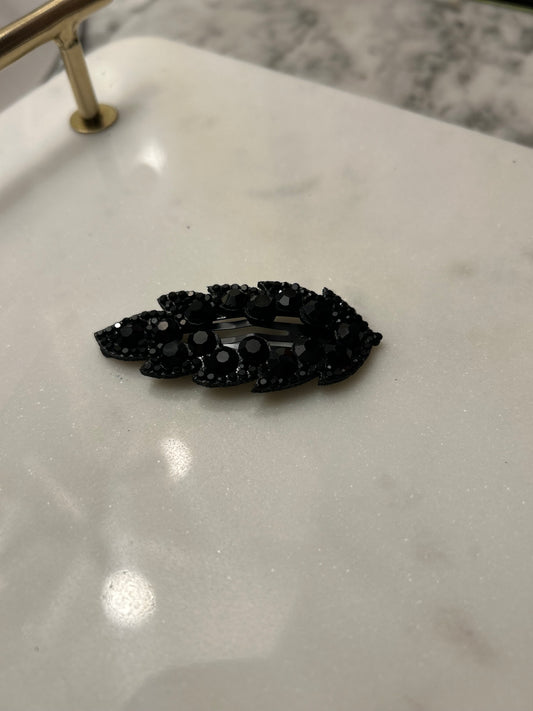 Lot de 2 barrettes à strass noir feuilles