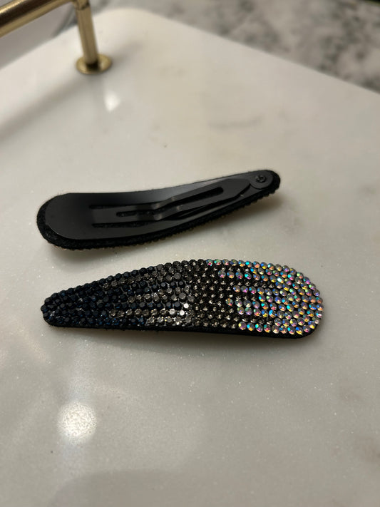 Lot de 2 barrettes à strass noirs longues
