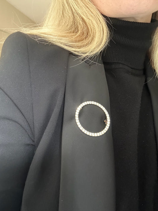 Broche ronde strass argent