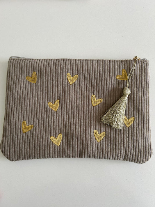 Trousse cœurs grise